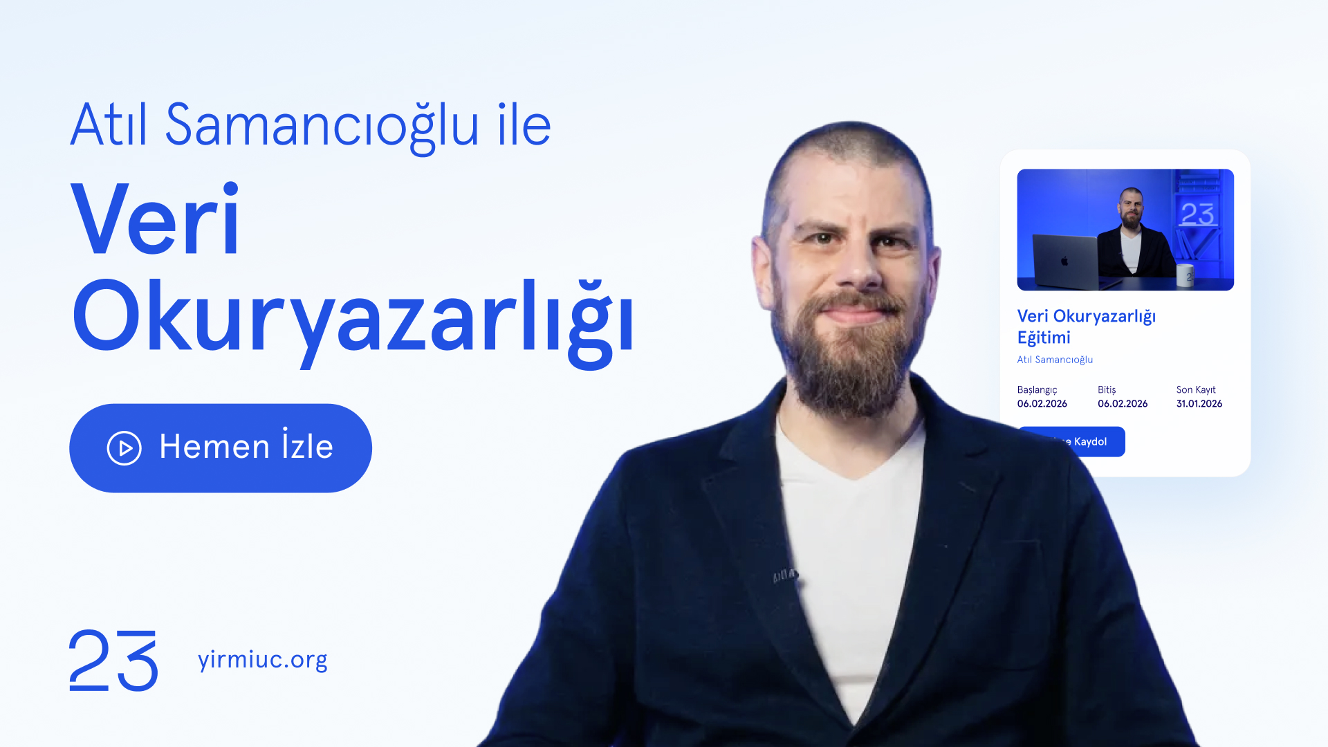 Şubat ayı itibarıyla 23 Platformu’nda yeni bir eğitim içeriği yayına alındı. Bu kapsamda, Atıl Samancıoğlu ile Veri Okuryazarlığı eğitimi platforma eklendi ve erişime açıldı.